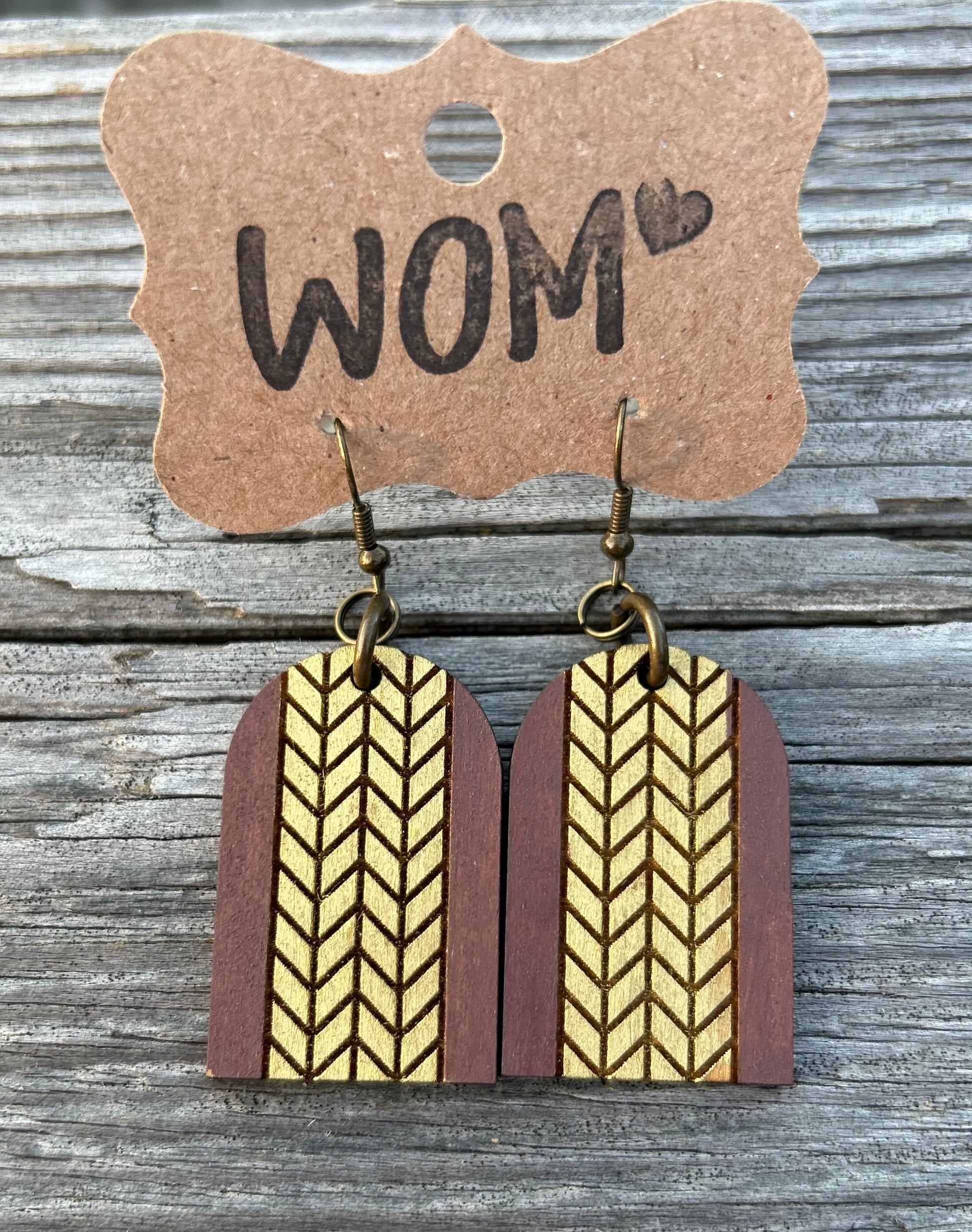 Get ready to add a touch of fun to your everyday outfits with these Chevron Gold and Brown Wooden Dangle Earrings! Effortlessly elevate your style with these quirky and playful earrings that are perfect for any occasion. With their unique design, these earrings are bound to be your new go-to accessory.