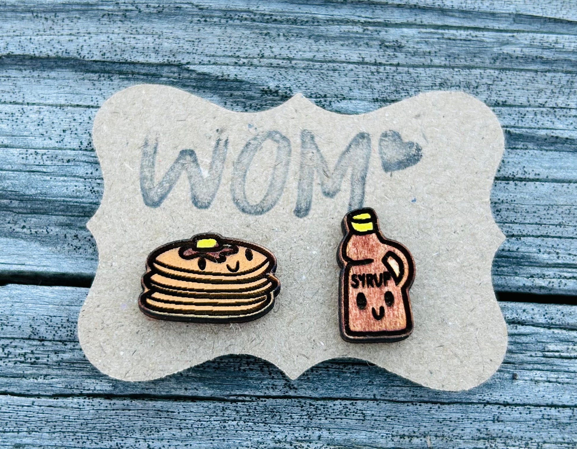 Pancake Syrup Mix and Match Wooden Earring Studs