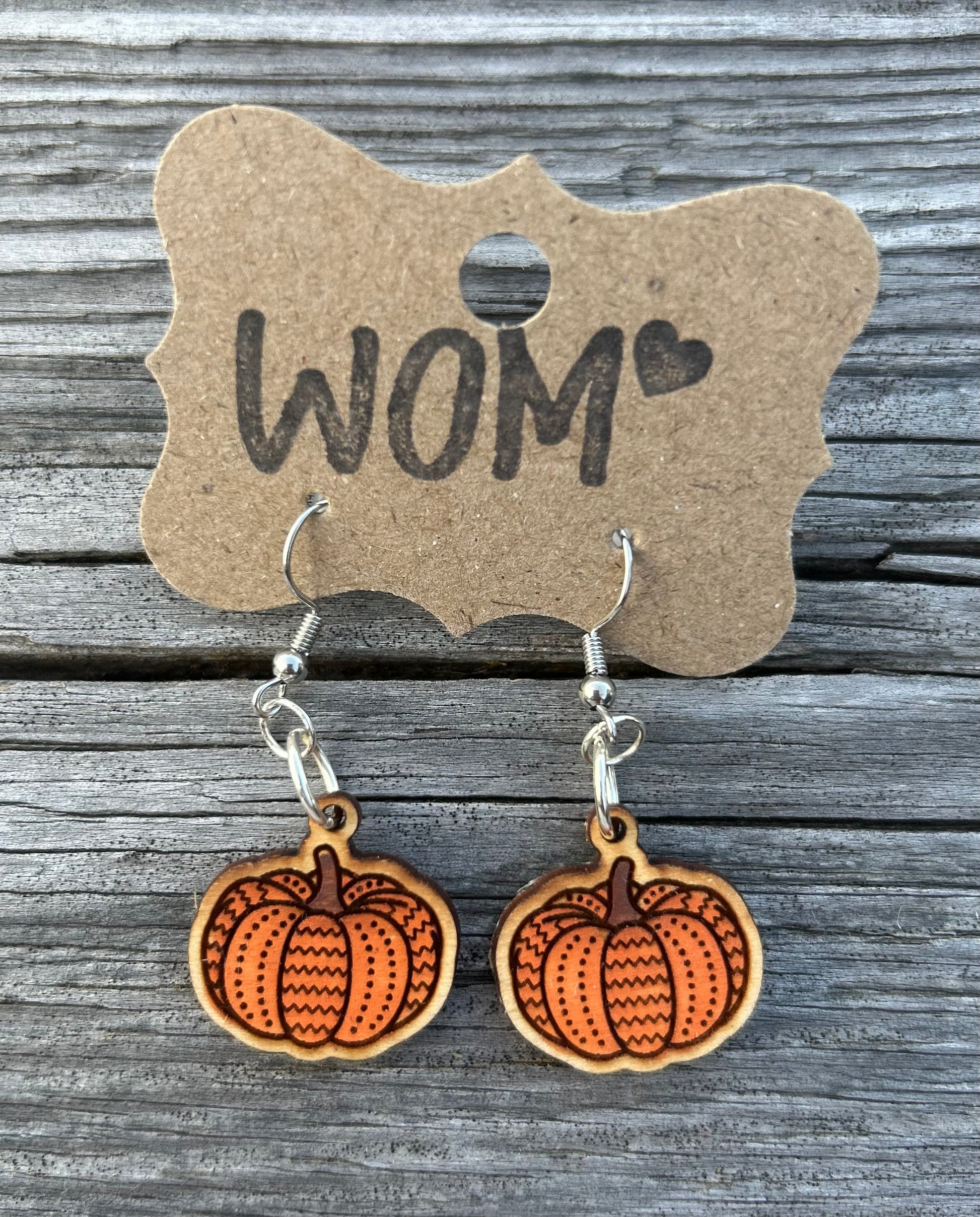 Quilted Pumpkin Wooden Dangle Earrings