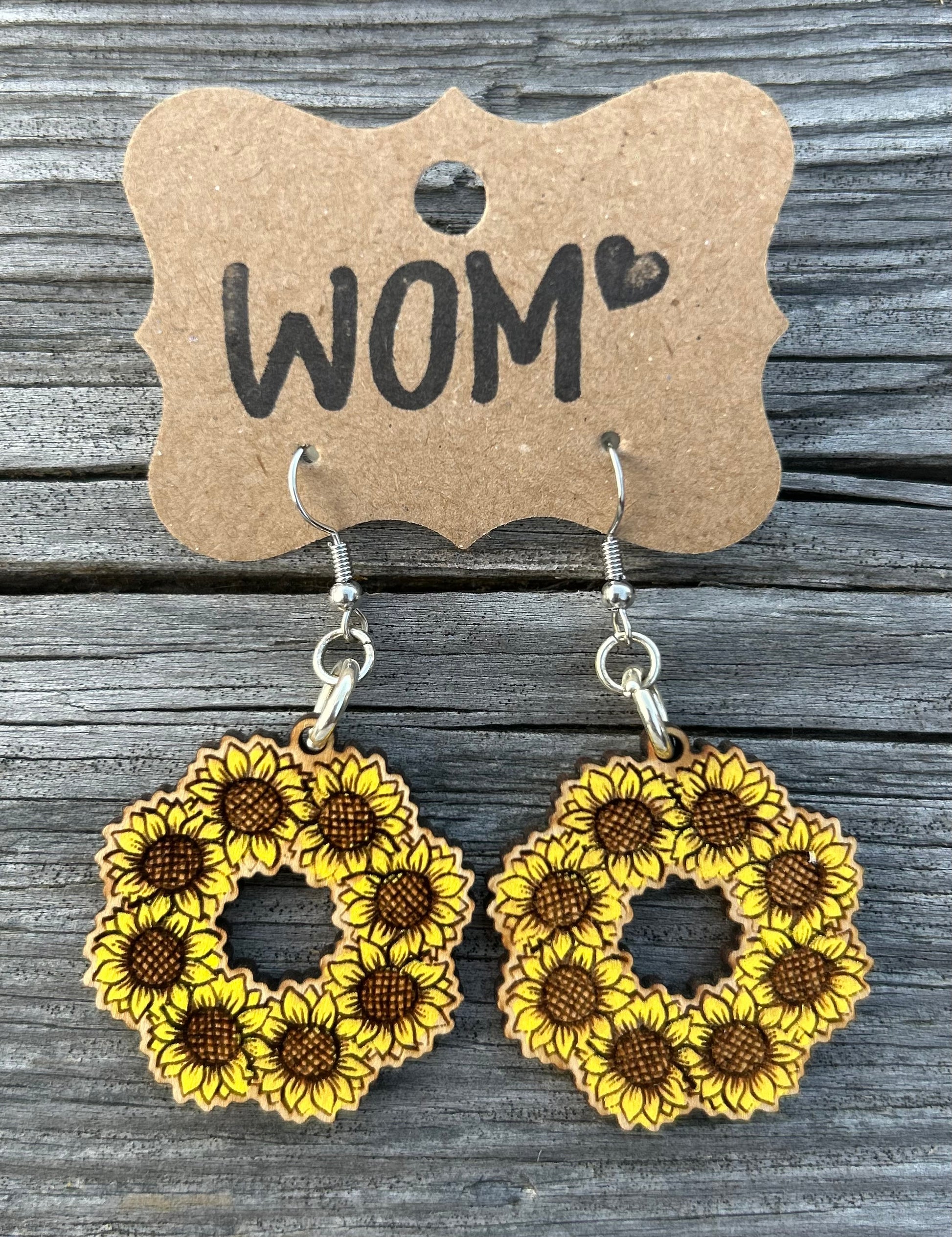 Add a pop of sunshine to your fall wardrobe with our Sunflower Wreath Wooden Dangle Earrings. Featuring a vibrant yellow color, these earrings will liven up any outfit. Perfect for adding a playful touch to your style.
